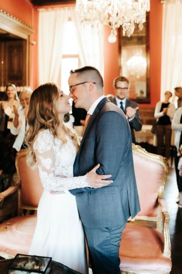Eine wunderschöne, intime und liebevolle standesamtliche Hochzeit von Ann-Kathrin und Martin im stilvollen Schlosshotel Kommende Ramersdorf – einer traumhaften Hochzeitslocation mit historischem Charme in Bonn. In persönlicher Atmosphäre gaben sich die beiden ihr emotionales Ja-Wort.