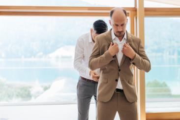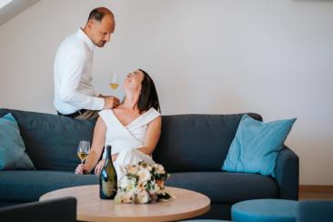 Natürlich durfte auch das Getting Ready nicht fehlen. In entspannter Atmosphäre, mit einem Glas Dom Pérignon, genossen wir diesen besonderen Morgen. Lachen, Vorfreude und echte Nähe prägten diese Stunden – die Bilder sprechen für sich.