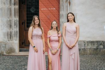 Nach der Zeremonie genossen die Gäste einen entspannten Empfang im Freien, bei dem Lachen, Umarmungen und Glückwünsche den Tag noch unvergesslicher machten. Direkt im Anschluss entstand das Hochzeitsshooting im wunderschönen Garten und an der malerischen Brücke der Abtei Marienstatt, wo Celina und Robin intime und liebevolle Momente miteinander teilten.